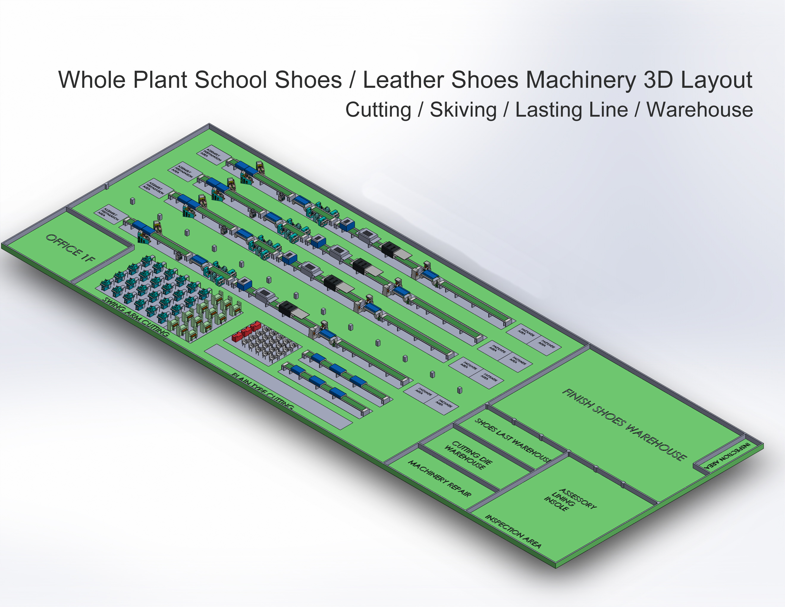 4 Production Line for Turnkey Shoe Making Machinery Solution-3D Layout