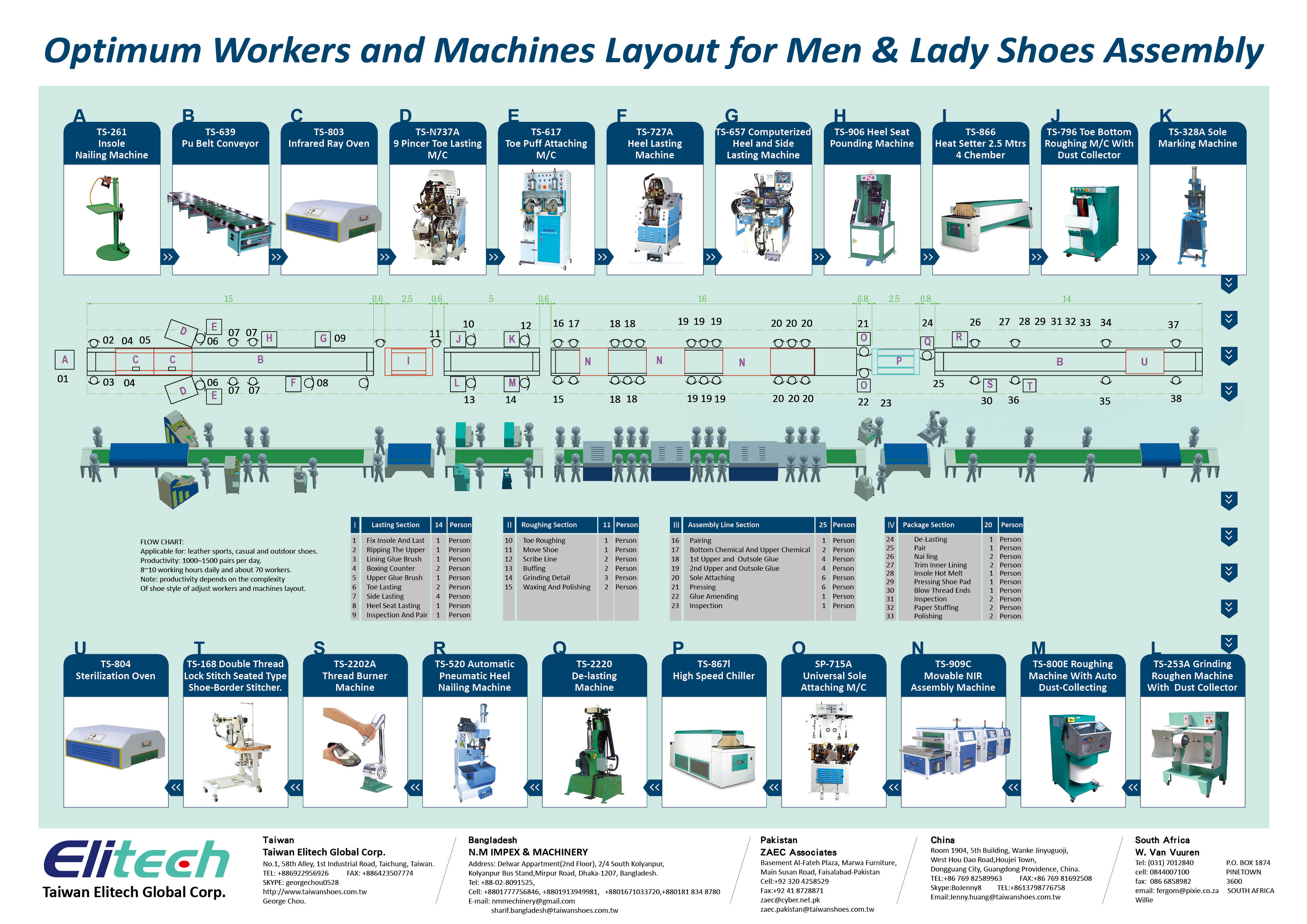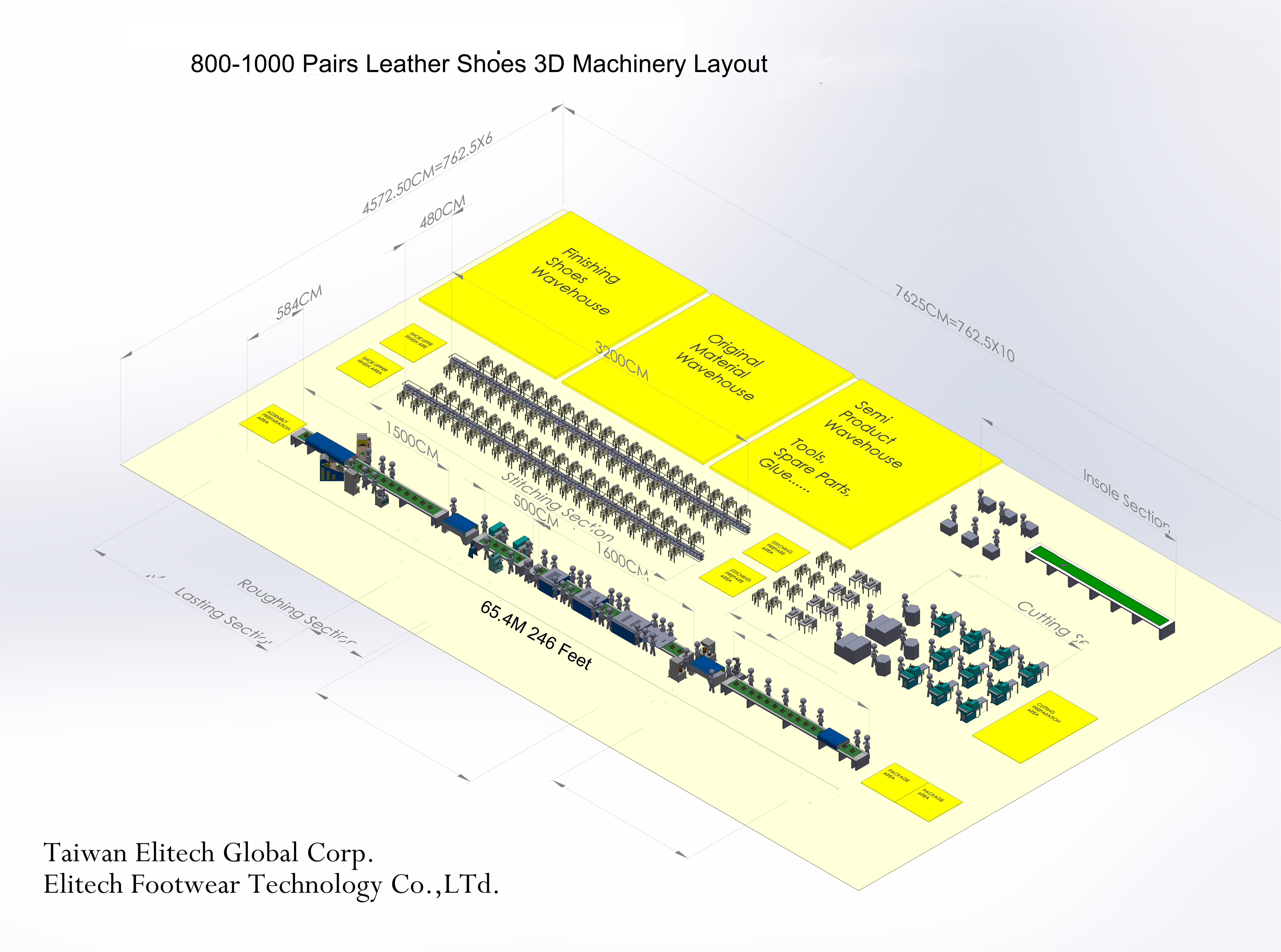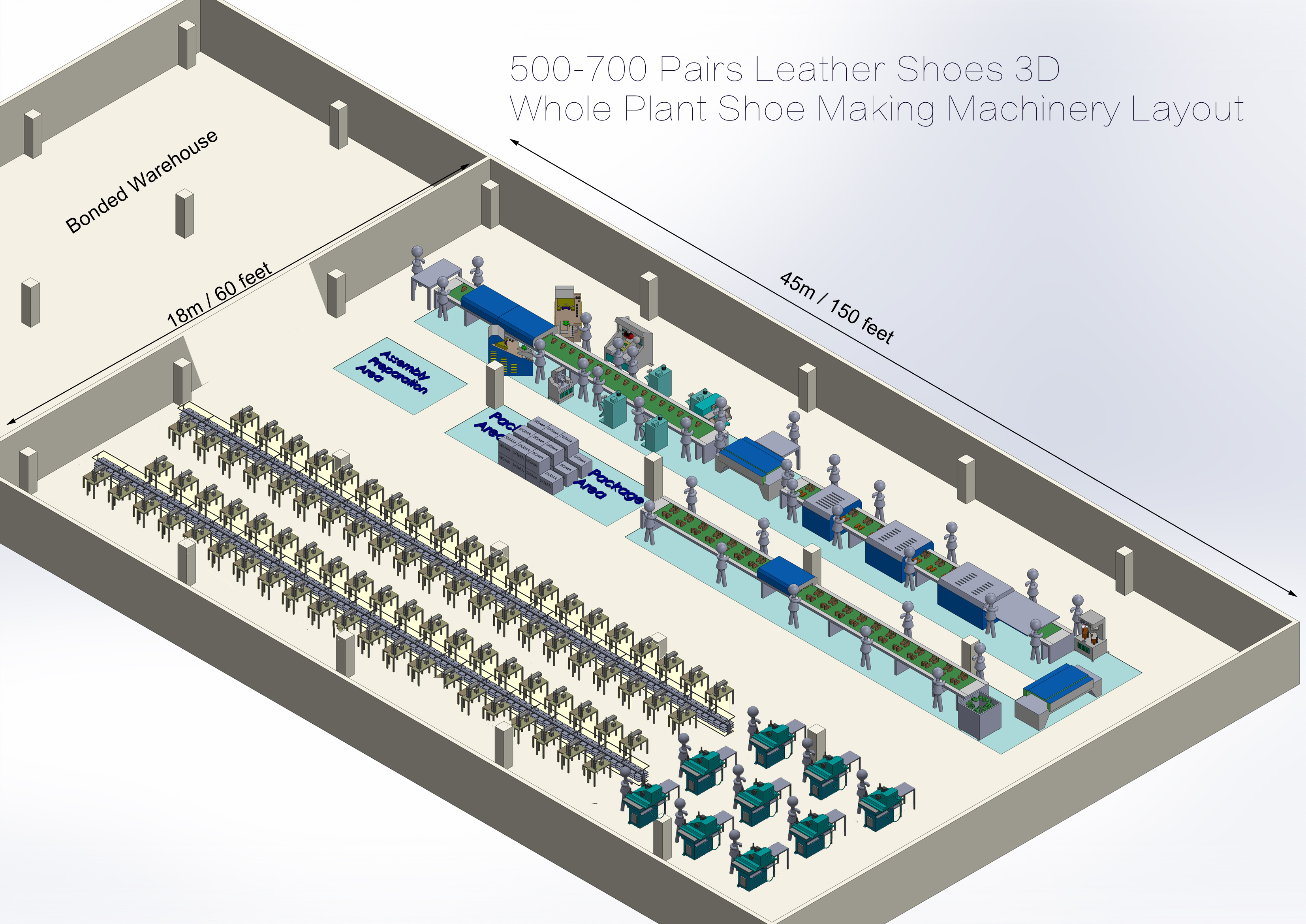 500-700 Pairs Leather Shoes Whole Plant Shoe Making Machinery Layout